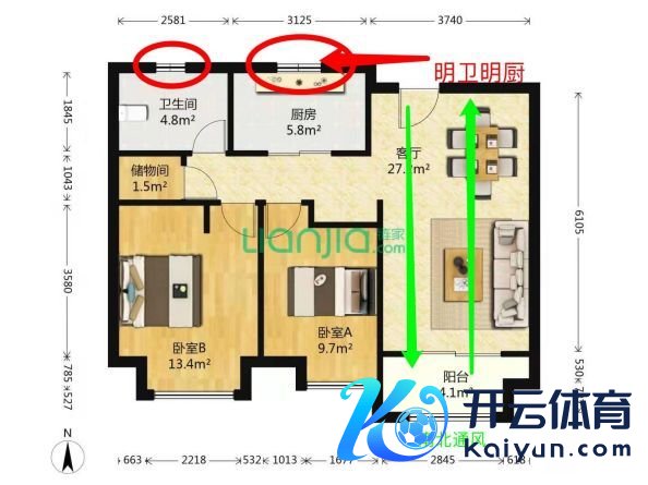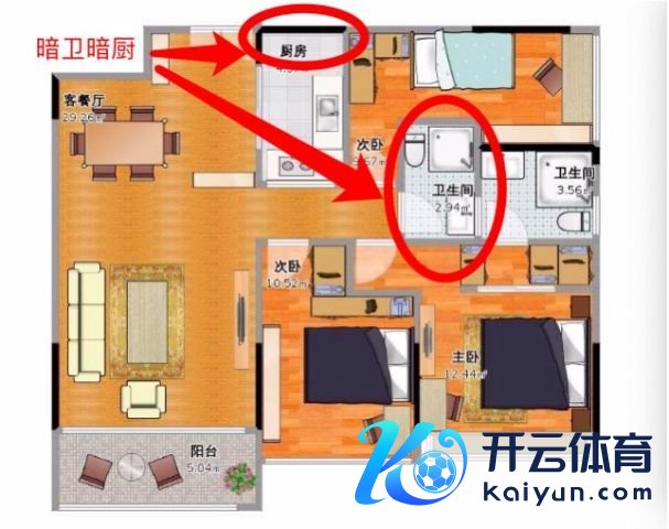 而卫生间亦然雷同的意思。这两个区域的透风性相配蹙迫,且暗厨暗卫也很影响采光性。