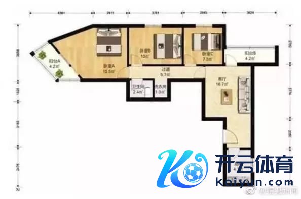 还有即是手枪户型:这种户型体式像一霸手枪,且缺角严重,且这种户型朝南切面太少,采光性就比拟差。