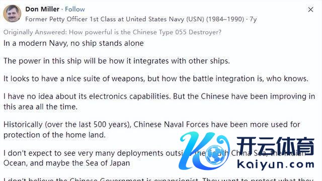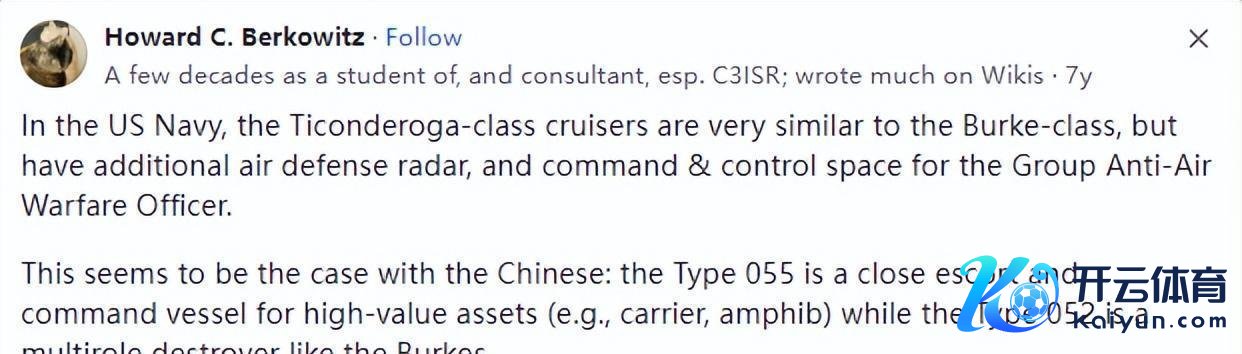 有个好意思国网友在国际最大的问答平台Quora上问了这样个问题:“中国的055型终结舰和好意思国的阿利·伯克级终结舰开云体育,哪个更锐利呢?”很光显,这又是好意思国想把自家军事装备和中国的拿来作比拟的话题。