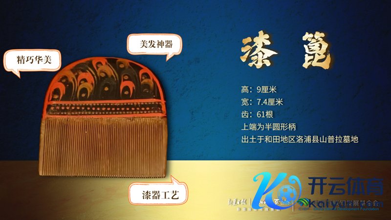 漆篦,1984年出土于和郊外区洛浦县山普拉坟场,高9厘米、宽7.4厘米,上端为半圆形柄,齿61根,陈列均匀,密而不繁。