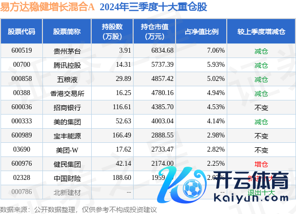 易方达肃穆增长搀和A为搀和型-均衡基金,凭证最新一期基金季报流露,该基金金钱成立:股票占净值比55.69%,债券占净值比49.59%,现款占净值比1.84%。基金十大重仓股如下: